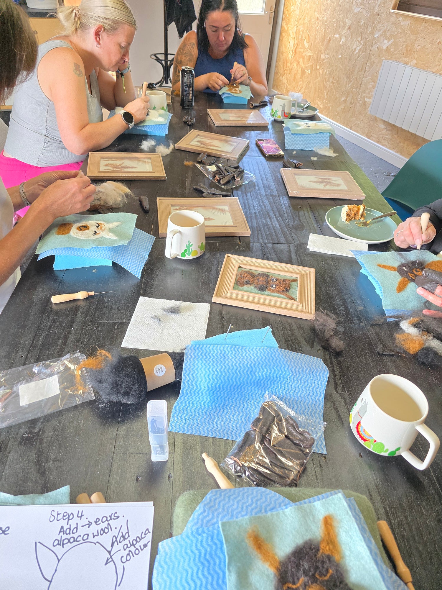 Hosting a workshop there is amazing as it is calming with perfect views of the fields around us and of course the alpacas and their other friends (sheep and chickens). A perfect way to do some needle felting and coming away all relaxed and proud of the work achieved.